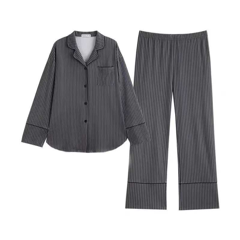 Pajamas for Women in Spring and Autumn Long Sleeved Striped Thin Design Can Be W